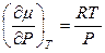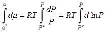 В уравнении (6.74) можно разделить переменные и затем проинтегрировать полученное выражение при постоянной температуре от определенного стандартного давления P o до любого заданного давления Р: