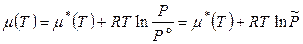 где μ *(T) – стандартный химический потенциал идеального газа (химический потенциал при стандартном давлении), зависящий от температуры и природы газа. Согласно (6.72) химический потенциал идеального газа при постоянном давлении уменьшается с ростом температуры.