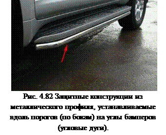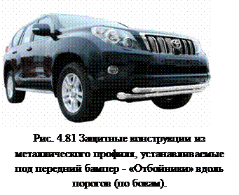 Расширители колесных арок монтируются на передние и задние крылья автомобиля. Придают автомобилю мужественный вид и подчеркивают его индивидуальность. Защищают от грязи, летящей из-под колес, боковины автомобиля. Защитные конструкции из металлического профиля. Для их изготовления используются трубы различного диаметра от 15 мм до 76 мм и металлические полосы из нержавеющей стали толщиной 4-5 мм.