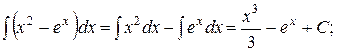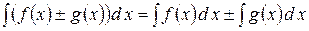 5) Невизначений інтеграл від алгебраїчної суми функцій дорівнює сумі інтегралів від цих функцій: