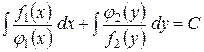 Щоб розв’язати таке рівняння потрібно відокремити змінні, тобто функція при Для відокремлення змінних досить обидві його частини поділити на функцію
