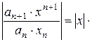 Для того, щоб ряд був збіжним, потрібно, щоб одержаний вираз був меншим 1, тобто