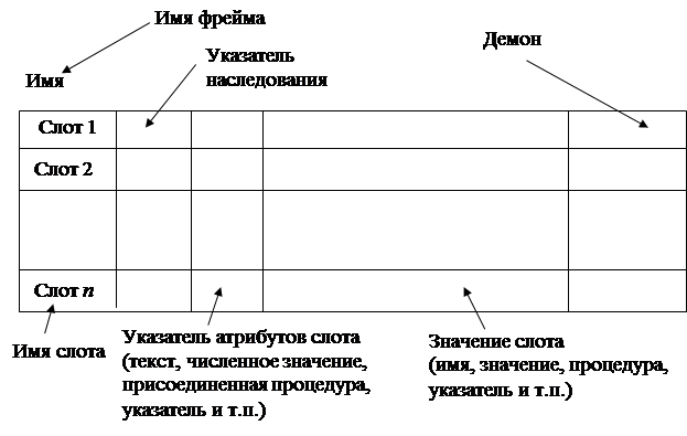 Наличие имен фреймов и имен слотов означает, что значения, хранимые во фреймах, имеют характер отсылок и тем самым внутренне интерпретированы. Возможность размещения в качестве слотов приказов вызова тех или иных процедур для исполнения позволяет активизировать программы на основе имеющихся знаний. Таким образом, фреймовые языки удовлетворяют четырем основным признакам знаний – интерпретируемости, структурированности, связности и активности. Использование фреймов в фундаментальных науках дает возможность формирования более строгого понятийного аппарата и комплексирования обычных моделей с фреймовыми формализмами. Для описательных наук фреймы – это один из немногих способов формализации, создания понятийного аппарата. Вернуться