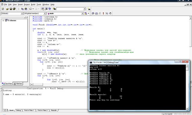 return 0; } // Функция поиска индексов минимального и максимального элементов массива void Poisk (double **a,int n,int m,int *imin,int *imax,int *jmin,int *jmax) { int i, j;