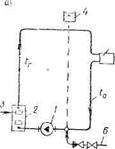 Системи водяного опалювання з природною і штучною циркуляцією теплоносія Вода від казана до приладів теплообмінника і назад рухається під дією гідростатичного натиску, що виникає завдяки різній щільності охолодженої і нагрітої рідини (теплоносія). Яка ж сила примушує воду циркулювати в системі, тобто рухатися по трубах з казана в нагрівальні прилади і назад в казан? Ця сила виникає при нагріванні води в казані і охолоджуванні її в нагрівальних приладах. Вода, нагріта в казані 1, як легша, піднімається по головному подаючому стояку 2 вгору. Із стояка вона поступає в ті, що розводять магістральні трубопроводи 3, а з них через подаючі стояки 4 - в нагрівальні прилади. Тут вода остигає і тому стає важчою. Наприклад щільність води при 40 З складає 992,24 кг/м, при 70"С - 977,8 кг/м: при 95З - 961,9 кг/м2 Охолоджена вода через зворотні стояки 5 і зворотну лінію Про опускається вниз і своєю вагою витісняє нагріту воду з казана вгору - в головний подаючий стояк. Описаний процес безперервно повторюється і в результаті відбувається постійна циркуляція води в системі. Сила циркуляції, або, як прийнято говорити, циркуляційний тиск, залежить від різниці ваги стовпа гарячіше і стовпа охолодженої (зворотною) води, отже, вона залежить від різниці температур гарячіше і зворотної води. Циркуляційний тиск обумовлюється висотою розташування нагрівального приладу над казаном: чим вище розташований прилад, тим більше для нього циркуляційний тиск. Це можна довести таким чином. У системах водяного опалювання найбільша температура гарячої води зазвичай рівна 95°С, а охолодженою - 70oС. Якщо нехтувати охолоджуванням води в трубах, то можна, вважати, що в нагрівальний прилад вода поступає з температурою 95 oС, а йде з нього з температурою 7СГС. За цієї умови визначимо спочатку для верхнього, а потім для нижнього нагрівального приладу циркуляційний тиск, під впливом якого відбувається через них рух води. За рахунок різниці циркуляційного тиску на перших і подальших поверхах спостерігається наступне явище: у системах водяного опалювання нагрівальні прилади верхніх поверхів прогріваються краще, ніж прилади нижніх поверхів. З приведених вище міркувань витікає, що в двотрубних системах опалювання нагрівальні прилади, розташовані на одному рівні з казаном або нижче за нього, працювати не будуть або ж будуть дуже слабо прогріватися. Для вказаних систем практикою встановлена найменша відстань між центром нагрівальних приладів нижнього поверху і центром казана в 3 метри. У зв'язку з цим казанові для систем опалювання повинні мати достатнє заглиблення. Вказаного недоліку позбавлені однотрубні системи опалювання. В цьому випадку гідростатичний натиск, що примушує циркулювати воду в системі, утворюватиметься із-за охолоджування води в трубопроводах, що підводять нагріту воду до нагрівальних приладів, а також відвідних охолоджену воду від приладів до казана. Це охолоджування корисне, по-перше, для створення гідростатичного натиску, а по-друге, для додаткового обігріву приміщення, тому вказані трубопроводи прокладають відкрито і не ізолюють. Навпаки, охолоджування води в головному стояку (підйомному трубопроводі) шкідливо, бо призводить до зниження температури і збільшення щільності і, як наслідок, до зменшення гідростатичного натиску. У зв'язку з цим підйомний стояк від каз