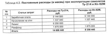 Из табл. 4.2 видно, что постоянные расходы при эксплуатации самолета Ту-214 составляют 14,6 млн руб., что на 75% выше постоянных расходов самолета Ил-62М. Это объясняется содержанием в постоянных расходах самолета Ту-214 лизинговых платежей в размере 6,25 млн руб.