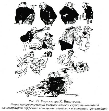 В ТЕХ СЛУЧАЯХ, КОГДА ПРЯМОЕ АГРЕССИВНОЕ ПОВЕДЕНИЕ НАКАЗУЕМО, НЕРЕДКО НАБЛЮДАЕТСЯ ЭФФЕКТ «СМЕЩЕНИЯ АГРЕССИИ». СУТЬ ЭТОГО ЭФФЕКТА В ТОМ, ЧТО ПОРОЖДЕННАЯ ФРУСТРАЦИЕЙ ЗАЩИТНАЯ АГРЕССИЯ ПЕРЕНАПРАВЛЯЕТСЯ (СМЕЩАЕТСЯ) С СУБЪЕКТА ИЛИ ОБСТОЯТЕЛЬСТВА, ВЫЗЫВАЮЩЕГО ЗАТРУДНЕНИЯ (ФРУСТРАТОРА), НА ДРУГИЕ ОБЪЕКТЫ, ТОЛЬКО НАПОМИНАЮЩИЕ ФРУСТРАЦИОННУЮ СИТУАЦИЮ ИЛИ АССОЦИИРУЮЩИЕСЯ С НЕЙ.
