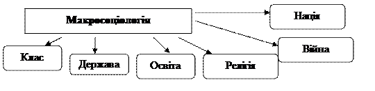 Макросоціологія – вивчає соціальну дійсність на рівні великих спільнот (місто, страта, нація, клас), або на рівні абстрактного розуміння соціальних систем та соціальних структур.