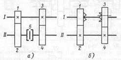 Рисунок 3 – Механизмы с много- Рисунок 4 – Механизмы с венцовыми блоками зубчатых колес муфтами