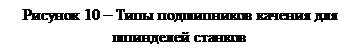7.1 Типы шпиндельных подшипников качения. Для шпинделей станков практически применяются все основные типы подшипников качения: шариковые, радиальные и радиально-упорные, роликовые с коническими и цилиндрическими роликами (рисунок 10), а также специальные конструкции.