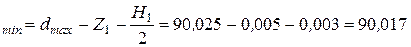 Исполнительным называют предельный размер калибра, по которому изготовляют новый калибр. Исполнительным размером скобы служит её наименьший предельный размер с положительным отклонением, для пробки и контркалибра – их наибольший предельный размер с отрицательным отклонением. Таким образом, на чертеже отклонение проставляют в «тело» калибра. Рассмотрим пример расчета исполнительных размеров калибра. Пример. Определить предельные и исполнительные размеры калибров для контроля вала Æ90к6. По ГОСТ 25347 – 82 находим предельные отклонения вала: еs = +25 мкм еi = +3 мкм Наибольший и наименьший предельные размеры вала: d