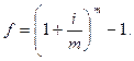 в) эффективная ставка процентов, если известна номинальная ставка процентов i, и проценты начисляются m раз в год: