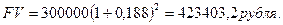 Следовательно, для того чтобы обеспечить требуемый уровень доходности, банк должен назначить процентную ставку 18,8%. В этом случае сумма долга с процентами может быть определена таким образом: