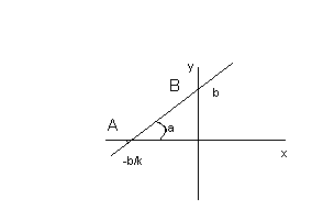 Найдем геометрический смысл коэффициентов k и b в уравнении (29.10). Положив x=0, из (29.10) находим y=b, а в случае y=0, будет. То есть точки и находятся на прямой .