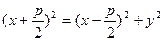 Теорема 34.2. Пусть расстояние между фокусом F и директрисой l параболы равно p. Тогда в выбранной системе координат парабола имеет уравнение