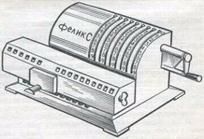 Основу конструкции арифмометра К.Томаса составили ступенчатые валики Г.Лейбница. Одному разряду соответствовал один ступенчатый валик. Против каждого валика находилась установочная зубчатка, которая могла двигаться вдоль четырехгранной оси с помощью ползуна, заканчивающегося на лицевой панели кнопкой. При установке чисел кнопка свободно передвигалась по прорезям-разрядам, тем самым передвигая установочную зубчатку по оси до ее совпадения с нужной цифрой. Вращая с помощью рукоятки ступенчатые валики, зубчатка входила в зацепление с соответствующим числом ступенек на валике и поворачивала его на тот или иной угол. На осях находились промежуточные шестерни, которые передавали это вращение цифровому В 1880г. В.Т. Однер создает в России арифмометр с зубчаткой с переменным количеством зубцов, а в 1890 году налаживает массовый выпуск усовершенствованных арифмометров, которые в первой четверти XIX века были основными математическими машинами, нашедшими применение во всем мире. Их модернизация «Феликс» выпускалась в СССР до 50-х годов.