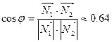 По уравнениям плоскостей определим их нормальные векторы: , . Угол φ между плоскостями Р1 и Р2 найдем по формуле (6):