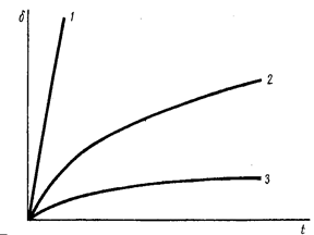 15.2 – Рост толщины слоя пленки во времени по линейному (1), параболическому (2) и логарифмическому (3) законам