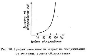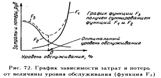Таким образом, рост конкурентоспособности компании, вызванный ростом уровня обслуживания, сопровождается, с одной стороны, снижением потерь на рынке, а с другой — повышением расходов на сервис. Задача логистической службы заключается в поиске оптимальной величины уровня обслуживания.