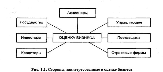 Как правило, цель оценки состоит в определении какой-либо оценочной стоимости, что необходимо клиенту для принятия решения. В проведении оценочных работ заинтересованы различные стороны: с государственных структур до частных лиц; в оценке бизнеса могут быть заинтересованы контрольно-ревизионные органы, управленческие структуры, кредитные организации, страховые компании, налоговые фирмы и другие организации, частные владельцы бизнеса, инвесторы и т.п.