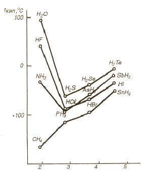 Рисунок 6.2 – Температуры кипения некоторых соединений водорода
