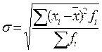 Варіація ознаки є властивістю статистичної сукупності і зумовлена дією безлічі взаємопов'язаних причин, серед яких є основні і другорядні. Основні формують центр розподілу, другорядні - варіацію ознак, сукупна їх дія - форму розподілу [2]. Чим менша варіація, тим більш надійними, типовішими є характеристики центру, насамперед середня. Для характеристики варіації застосовують систему таких оцінок. Розмах варіації - це різниця між найбільшим і найменшим значенням ознаки R= xmax - xmln. В інтервальному ряді розподілу R визначають як різницю між верхньою межею останнього інтервалу і нижньою межею першого або ж різницю між середніми значеннями цих інтервалів. Як міра варіації R не завжди може бути надійним, оскільки залежить від двох крайніх значень, які часто не є типовими для сукупності, або мають випадковий характер. Вони отримали назву «викиди». В практиці статистичних досліджень крайні значення підлягають обробці або, принаймні, уважному розгляданню. Як правило, це помилки кодування або реєстрації, іноді вони мають випадковий характер. Тому їх часто просто викидають, звужуючи тим самим розмах і роблячи сукупність більш однорідною. Також зменшує вплив випадкових причин так званий квартальний розмах, обчислений за формулою Rq= Q3 – Q1 В усякому разі, відкидаючи крайні значення, слід, пам'ятати, що інколи з ними може бути пов'язане щось цікаве або навіть феноменальне. Замість простого відкидання пропонують процедури обчислення оцінок розподілу, які нечутливі до структури даних і отримали назву робастних [1]. Робастними оцінками називають також оцінки розподілу, які отримують при застосуванні цих методів. Програми статистичних пакетів часто передбачають обчислення оцінок Хампеля, Ендрюса та Т'юки. Наприклад, Т'юки (Tukey) запропонував один з видів робастних оцінок, а саме вінзорізовані оцінки. Суть в тому, що крайні значення не відкидаються а замінюються. Якщо маємо упорядкований ряд значень х1, х2,..., хп, то х1, надається значення х2, а хп -значення хп-1. Якщо така операція не дає бажаних наслідків, тобто сукупність ще не стає досить однорідною, то процедуру повторюють (наприклад, за допомогою пакета статистичних програм BMDP до 5 разів). Так, при двократній вінзорізації х1 та х2 присвоюється величина варіанти х3, а двом останнім у ряді — величина хп-2. Важливо підкреслити, що статистичний аналіз відноситься до таких робіт, де від ретельності підготовки матеріалу може залежати успіх всієї справи. Щодо всіляких процедур «чистки» або попередньої обробки даних, то тут окрім професійного боку справи існує ще й етичний. Дослідник повинен прагнути до об'єктивного, науково обгрунтованого результату, а він може виявитись і не таким, як хотілось би. Середнє відхилення обчислюється як: 1) середнє лінійне відхилення: а) незважене: б) зважене: 2) середнє квадратичне відхилення: а) незважене: б) зважене: Характеристика варіації а) незважена: б) зважена: На практиці застосовують більш просту формулу розрахунку дисперсії: