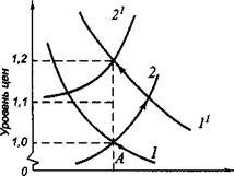 Увеличение денежной массы (скорости оборота денег) сдвигает кривую совокупного спроса вверх 11 вдоль кривой совокупного предложения до достижения нового равновесного уровня в краткосрочном аспекте. Расширение объемов производства происходит в соответствии с мультипликационным эффектом первоначального расширения спроса. Вместе с тем растущий спрос подталкивает вверх общий уровень цен. Вызванный ростом спроса рост цен по истечении определенного промежутка времени будет осознан всеми экономическими субъектами. Цена труда увеличится, возросшая стоимость всех остальных ресурсов также увеличит издержки производства. В результате кривая совокупного предложения переместится влево — вверх 21 на величину роста цен. Кривая совокупного спроса опять переместится вверх на величину предыдущего прироста спроса. В последующих периодах будут происходить сдвиги кривых спроса и предложения так, что на долгосрочном временном промежутке весь рост спроса будет компенсироваться ростом цен, а объем производства вернется к своему естественному уровню. Данный вид развития инфляционного процесса получил название инфляции инспирированной спросом. Уровень инфляции спроса будет зависеть от формы кривой совокупного предложения и определяется следующими факторами: среднегодовыми темпами экономического роста экономики; положением на рынке труда и существующим уровнем полной занятости; динамикой и темпами прироста компонентов совокупного спроса; способностью хозяйственных агентов прогнозировать будущий рост цен. Инфляционный импульс в экономике может возникать из-за изменений совокупного предложения. В рамках модели это будет отражаться в сдвиге кривой совокупного предложения влево. Реальный объем производства понизится, а цены вырастут. Обычной реакцией на повышение цен является рост предложения денег Конечный результат этого процесса в долгосрочном периоде будет таким же, как и в случае первоначального роста спроса в экономике. Протекание инфляционного процесса описанным выше способом получило название инфляции, инспирированной затратами, или инфляции издержек. При этом уровень цен может повышаться как в результате действительного роста издержек производства, так и за счет ожиданий увеличения текущих затрат. Рост издержек обусловливается действием не только краткосрочных факторов (например, вследствие кратковременного увеличения совокупного спроса но и долговременных: наличием диспропорций и узких мест в производстве (структурная инфляция); изменением структуры рынка в сторону его большей монополизации; нарушением или шоком (срывом) предложения; ростом зарплаты, обгоняющей темпы роста производительности труда. Очень часто цены и зарплата, начав расти, втягивают друг друга в инфляционную спираль «зарплата-цены». Она проявляется в том, что трудящиеся добиваются повышения зарплаты, стремясь компенсировать рост цен. Рост издержек производства при неизменной норме прибыли повышает цены на продукцию. В результате работники требуют еще большего повышения номинальной зарплаты, а процесс развивается по кругу. Разорвать такую спираль достаточно трудно, поскольку спрос постоянно растет и в экономике существует полная занятость. Рост спроса в экономике обычно приводит к повышению цен, зарплаты, занятости, реального