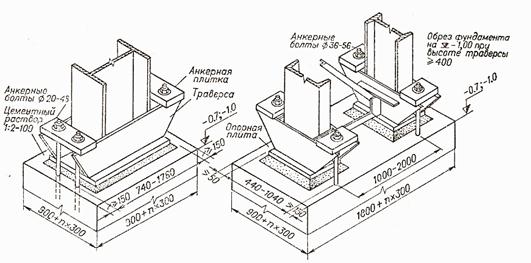 В фундаментах под стальные колонны подколонник делают сплошным (без стакана) с анкерными болтами (рис.4).