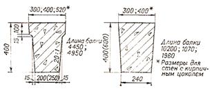 Стены каркасных зданий опирают на фундаментные балки, укладываемые между подколонниками фундаментов на бетонные столбики необходимой высоты, бетонируемые на уступах фундаментов (рис. 2). Фундаментные балки имеют тавровое или трапецеидальное поперечное сечение (рис.5). Номинальная длина их составляет 6 и 12 м. Конструктивная длина фундаментных балок выбирается в зависимости от ширины подколонника и местоположения балок. Верхняя грань балок располагается на 30 мм ниже уровня чистого пола. а) б)