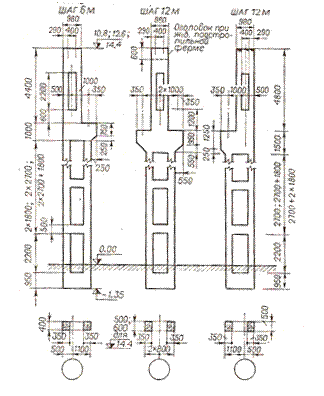 Рис. 10. Двухветвевые железобетонные колонны с проходами в уровне крановых путей