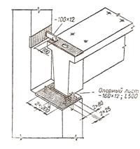 Крепление подкрановых балок к консолям колонн осуществляется на анкерных болтах, пропущенных через опорный лист, приваренный к закладной пластине консоли. Верхний пояс балки крепят к колонне с помощью вертикального листа, приваренного к закладным деталям. Рельсы с подкрановыми балками соединяют стальными лапками, расположенными через 750 мм. Для снижения шума от кранов и уменьшения динамических нагрузок на балки под рельсы укладывают упругие прокладки. Во избежание ударов мостовых кранов о колонны торцового фахверка на концах подкрановых путей устраивают стальные упоры, снабженные амортизаторами – буферами из деревянного бруса (рис. 13).