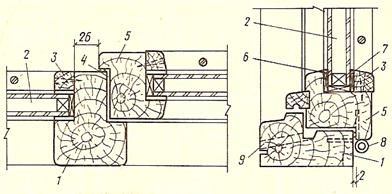 Рис. 3. Узлы сопряжения створок деревянных окон с рамой переплета