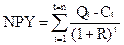 Припустимо, що в економіці пропонуються три інвестиційних проекти, різні за вартістю та нормою прибутку. Перший проект, вартість – 120 тис. грн., норма прибутку – 20 %; другий проект: вартість – 180 тис. грн., норма прибутку – 15 %; третій проект: вартість – 230 тис. грн., норма прибутку – 10 %. Якщо процентна ставка дорівнюватиме 18%, то інвестиційний попит становитиме лише 120 тис. грн., оскільки тільки перший проект має норму прибутку, яка перевищує процентну ставку, тобто вартість інвестування. У разі зниження процентної ставки до 12 % інвестиційний попит збільшиться за рахунок другого проекту і становитиме 300 тис. грн., а за зниження процентної ставки до 8 % збільшиться за рахунок третього проекту до 530 тис. грн.. Вадою традиційного методу є те, що він не враховує фактор часу. Ця вада усувається на основі дисконтування потоків доходів та інвестиційних витрат, у результаті чого визначається дисконтована (теперішня) вартість майбутніх прибутків. Серед методів такого дисконтування найліпшим уважається метод чистої дисконтованої вартості, за яким прибутковість інвестиційного проекту визначається як різниця між дисконтованою вартістю очікуваних доходів і дисконтованою вартістю очікуваних витрат. Припустимо, що ставка дисконту дорівнює R, за перший рік реалізації проекту дохід та витрати становлять відповідно Q1 і С1; за другий рік – Q2 і С2 і т. д. За таких умов чисту дисконтовану вартість (NPY) проекту можна обчислити за формулою: