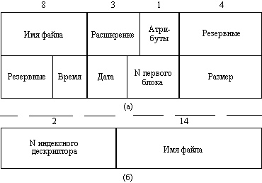 Рисунок 28 - Структура каталогов: а - структура записи каталога MS-DOS (32 байта);