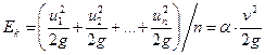 Поток жидкости рассматривается как совокупность п элементарных струек, каждая из которых обладает своей удельной кинетической энергией Определим среднее значение этой величины в сечении потока. Для этого действительные скорости элементарных струек u1, u2,..., ип заменим средней скоростью потока v; тогда среднее значение удельной кинетической энергии потока в данном сечении равно