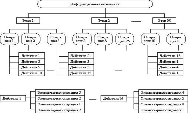 Рис.3 Представление информационной технологии в виде иерархической структуры, состоящей из этапов, действий, операций