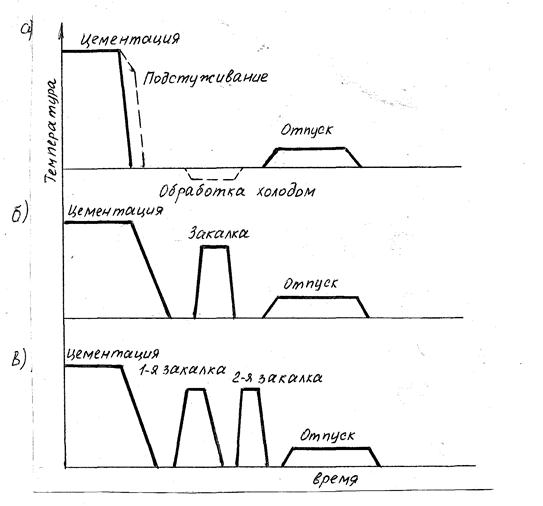 Рис. 12.2. Режимы термической обработки цементированных деталей