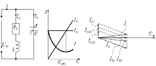 Ток, текущий через катушку индуктивности, можно найти по следующей формуле: Если ёмкость конденсатора При увеличении ёмкости конденсатора Компенсация сдвига фаз. Входное сопротивление большинства потребителей электроэнергии имеют индуктивный характер. Для того, чтобы уменьшить потребляемый ток и тем самым снизить потери энергии, параллельно приёмнику подключают батарею конденсатора, то есть добиваются режима резонанса тока. Этот процесс называют компенсацией сдвига фаз. Обычно величину Резонанс напряжений.