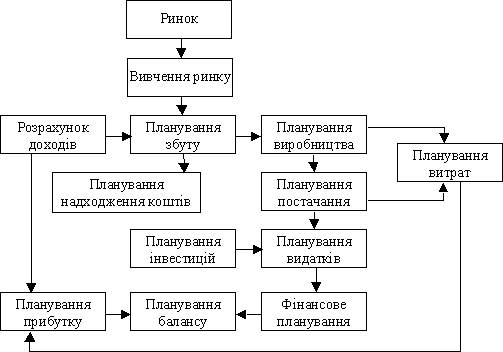 Виконати ефективно ці завдання можна лише в межах одночасного планування. Щоб пов’язати всі розрахунки один з одним, розробляють схему інтегрованого загального планування на підприємстві або систему планування. Наприклад, приблизну схему інтегрованого планування наводять В.А. Анташов та Г.В. Уварова (рис. 1.3).