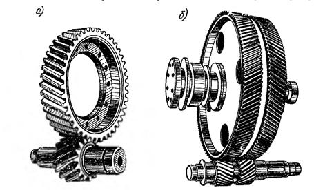 а – косозубая передача б – шевронная передача