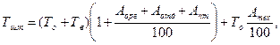 где Аорг, Аотд - соответственно время организационного обслуживания рабочего места, время на отдых и личные надобности, выраженное в процентах от оперативного времени; Апт - время перерывов, обусловленных технологией и организацией производства, выраженное в процентах от оперативного времени; Атех - время технического обслуживания рабочего места, выраженное в процентах от основного времени. В условиях серийного и мелкосерийного производства на машинно-ручных работах: