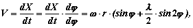 где Скорость поршня можно представить в виде суммы двух слагаемых: