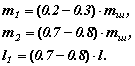 Масса т1 движется возвратно-поступательно вдоль оси цилиндра и поэтому относится к массе возвратно-поступательно движущихся частей; масса m2 совершает вращательное движение вокруг оси коленчатого вала и относится к массе вращающихся частей. Для определения масс т1 и т2 необходимо знать вес шатуна mш, а также положение его центра тяжести. У готового шатуна эти величины определяют способами взвешивания и качаний. При проектировании в качестве первого приближения можно принять: