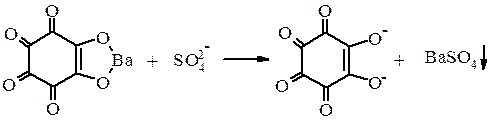 2. Реакція з барій родізонатом. SO42–-іони знебарвлюють червоний розчин барій родізонату: