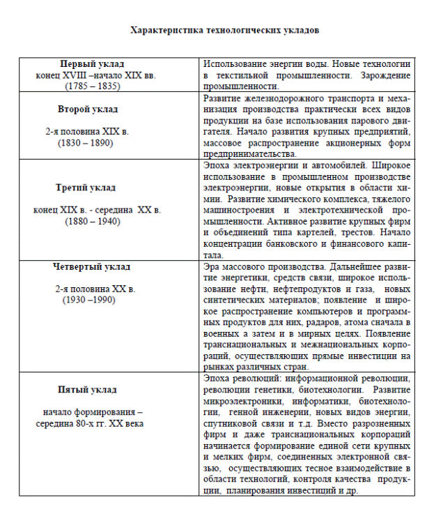Технологические уклады: понятие, характеристика, влияние на экономический рост
