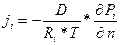 где n, nj - общее число частиц и число молекул j -ого компонента; mi, mj – масса молекул смеси и её компонентов; Di j, DiT – коэффициенты диффузии концентрационной и термической;