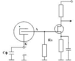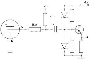 Как отмечалось, усилитель может быть усилителем напряжения или тока. В первом случае входное сопротивление собственно усилителя должно существенно превышать сопротивление нагрузки, с тем, чтобы не быть дестабилизирующим фактором при вариации его величины. Самым простым вариантом соединения детектора и усилителя является гальваническая связь. Такой вариант вызывает проблемы при высокой разности потенциалов выходной цепи детектора и усилителя (например, при анодном питании и нагрузке в анодной цепи), или при невозможности обеспечить входной ток смещения при большой величине сопротивления нагрузки. Альтернатива – применение ёмкостной связи, причём конденсатор должен быть высоковольтным с малой утечкой.