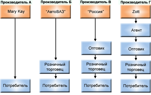 Рис. Типы маркетинговых каналов потребительских товаров и услуг