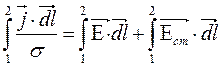 обобщённый закон Ома в дифференциальной форме. Рассмотрим неоднородный участок цепи, на котором действуют сторонние силы. Предположим электрический ток течёт вдоль тонких проводов (направление тока совпадает с направлением от провода j=const по S) (Рис. 80)