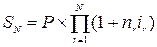 где n1, n2,…,nN – продолжительность интервалов начисления в годах; i1, i2,...,iN – годовые ставки процентов, соответствующие данным интервалам; N – количество интервалов начисления сложных процентов. Если все интервалы начисления одинаковы (как обычно бывает на практике) и ставка сложных процентов одна и та же, то наращенная сумма будет определяться: